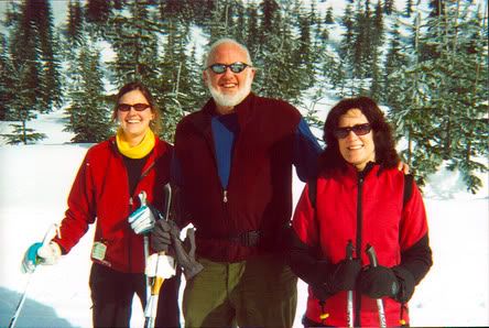 Time for another post, if only to ward off the summer doldrums. And what better for said task than some winter pix? Last winter here in the US Pacific Northwest we had great snowfall in the mountain. We are only an hour or so from the slopes in Tacoma, itself at sea level on Puget Sound in turn. I'm a Nordic (cross-country)skier of a fanatic stripe, and like to ski in the mountains; we climb, yes, but we sail downhill! I got out 23 times last season, which will show you that I am indeed a fanatic. Anyway, here's a link to a pic of my daughter Christine, me, and another ski group member on a nice day this last winter: